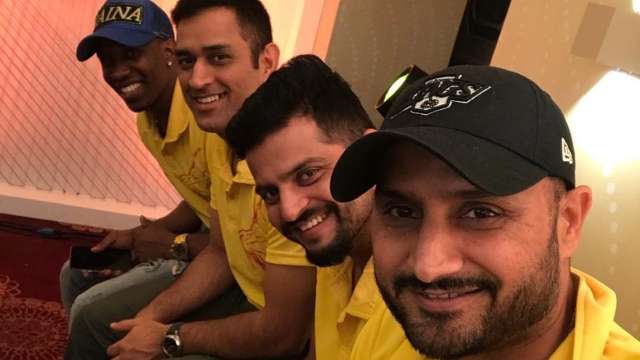 Fondly called as the Turbanator, Harbhajan Singh took to Twitter to post a selfie with MS Dhoni, Dwayne Bravo, and all-rounder Suresh Raina.