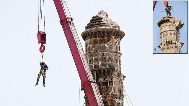 However, after a phone call that heritage department of AMC will take necessary steps, the dismantling of the structure was deferred. PVK Nair, deputy general manager (heritage projects) at AMC said the structure is listed as a heritage property and certain parts of its minarets were hanging dangerously and were removed.