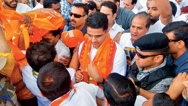The farmers’ meet at Charbhuja in Rajsamand on Sunday saw all the senior state leaders of the Congress party putting up a show of strength as they relentlessly attacked the BJP government. Terming BJP a non-performer PCC chief Sachin Pilot said, “Despite losing last assembly elections, Congress leaders stayed back in their areas and addressed grievances of people.” Reacting on reduction in fuel tax, Pilot said that it was the pressure created by the Opposition that forced chief minister Vasundhara Raje to reduce tax on petrol and diesel.