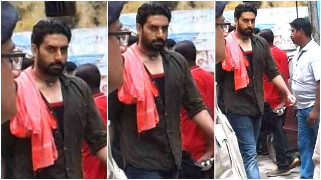 The first pictures of the actor from the sets of the film in Chinsurah, Hooghly have been leaked online and Jr Bachchan's look definitely reminds us of his character of Lallan in Mani Ratnam's Yuva. Especially, that red coloured cloth towel is giving us major deja vu. In these pictures, the actor can be seen enjoying some light moments off the camera.