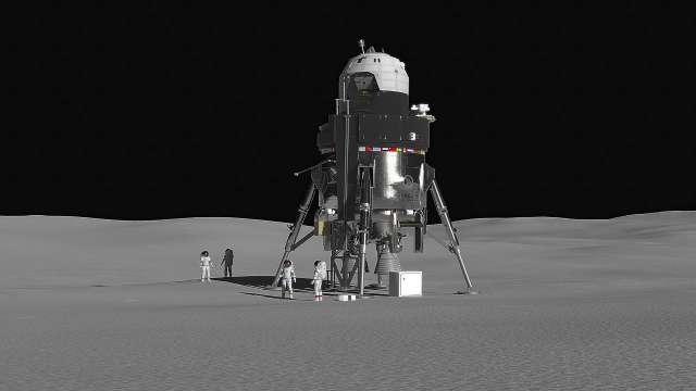 The craft can accommodate four people, carry one metric ton of equipment, and stay on the moon for up to two weeks without refueling before returning to the orbiting the station.