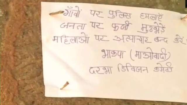 The Naxals left a note in the attack site. The note said, 'Gaon par police hamle , janta par farzi muthbheden , mahilaon par atyachaar band karein .' It translates to, " Stop police attack on villagers, stop fake encounters, stop assaulting women".