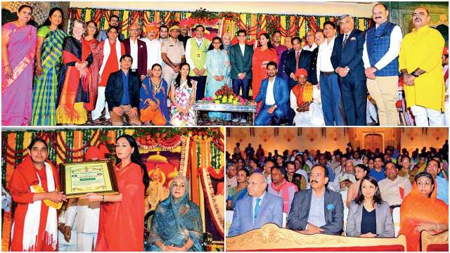 The awards consisted of Rs 31,000 cash, shawl, a replica of the silver urn (Gangajali) placed at the Sarvatobhadra Chowk of the City Palace, citation and a ‘shrifal’. The programme began with the arrival of Padmini Devi, Diya Kumari and the ‘Dharamgurus’ on the stage.